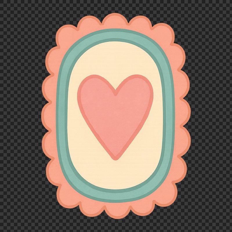 PNG Colorful heart in scalloped frame. https://www.rawpixel.com/image/18701934/png-colorful-heart-scalloped-frameView license