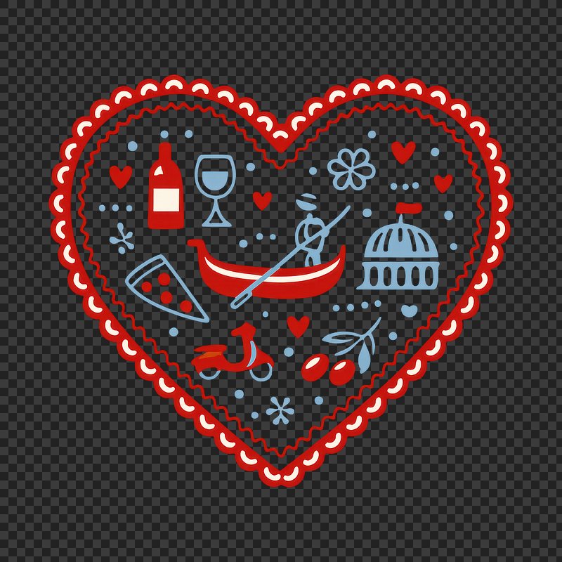 PNG Romantic Italian-themed heart illustration. https://www.rawpixel.com/image/25152849/png-romantic-italian-themed-heart-illustrationView license