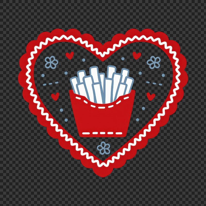 Heart-shaped fries love illustration. https://www.rawpixel.com/image/25229466/heart-shaped-fries-love-illustrationView license