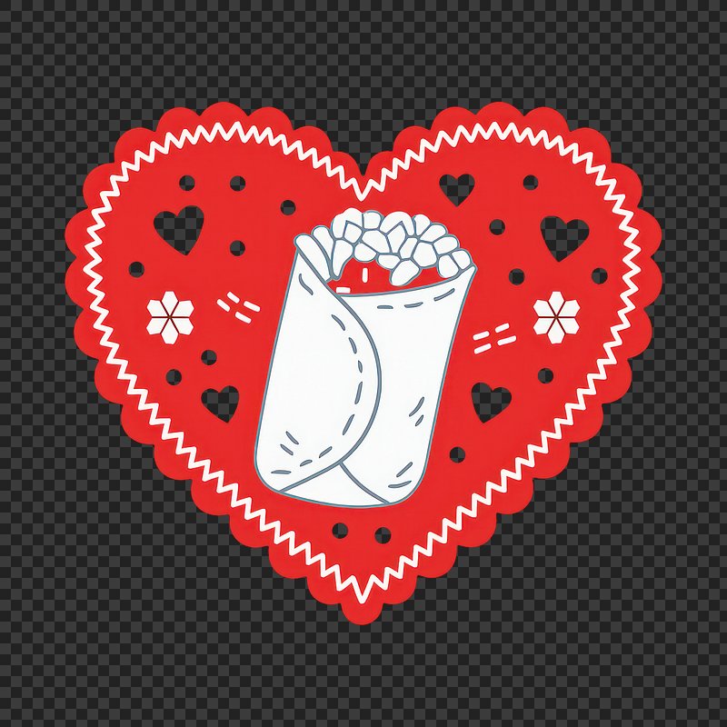 PNG Heart-shaped burrito love illustration. https://www.rawpixel.com/image/25151898/png-heart-shaped-burrito-love-illustrationView license