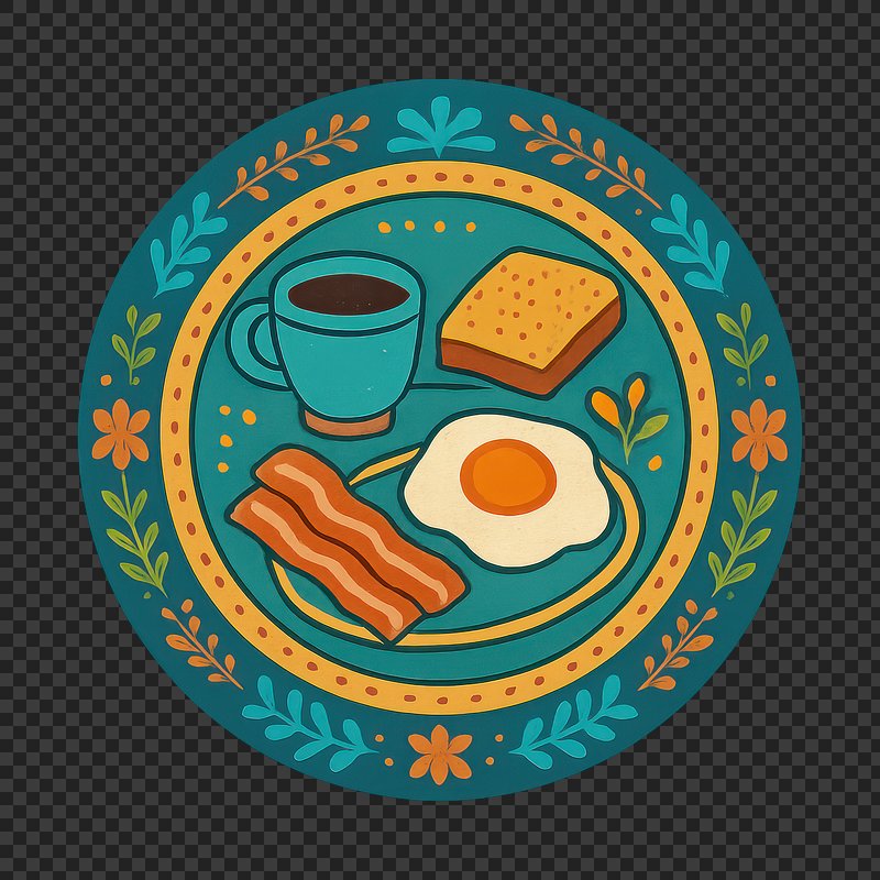 PNG Colorful breakfast plate illustration. https://www.rawpixel.com/image/23346976/png-colorful-breakfast-plate-illustrationView license