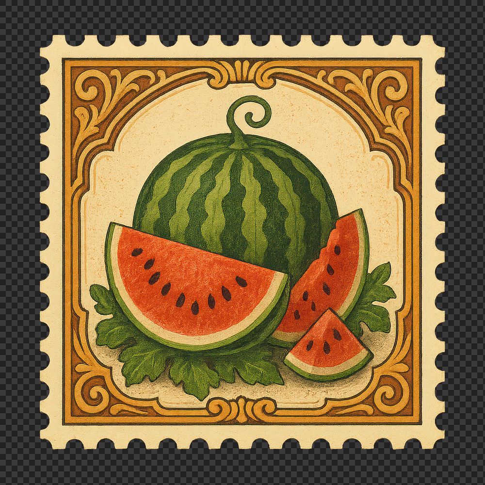 PNG Vintage watermelon postage stamp https://www.rawpixel.com/image/18236825/png-vintage-watermelon-postage-stampView license