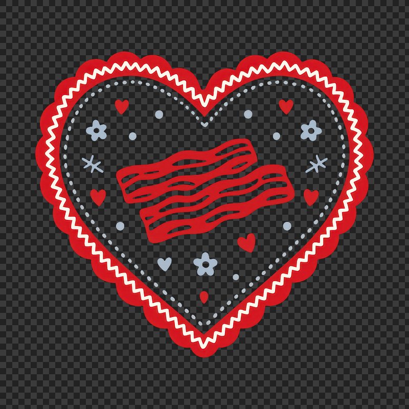 PNG Bacon heart with decorative patterns. https://www.rawpixel.com/image/25152869/png-bacon-heart-with-decorative-patternsView license