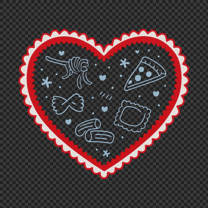 PNG Heart-shaped pasta-themed illustration. https://www.rawpixel.com/image/25155080/png-heart-shaped-pasta-themed-illustrationView license