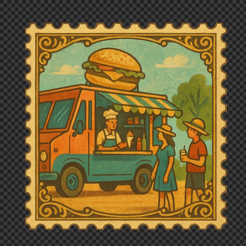 PNG Vintage food truck stamp illustration. https://www.rawpixel.com/image/18231472/png-vintage-food-truck-stamp-illustrationView license