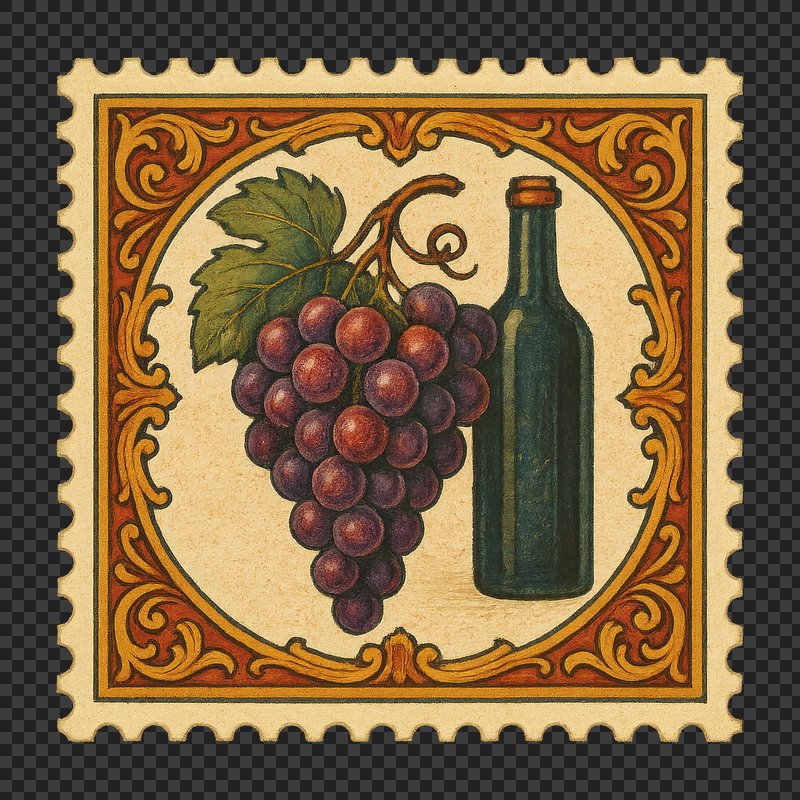 PNG Vintage grape wine stamp illustration. https://www.rawpixel.com/image/18236843/png-vintage-grape-wine-stamp-illustrationView license