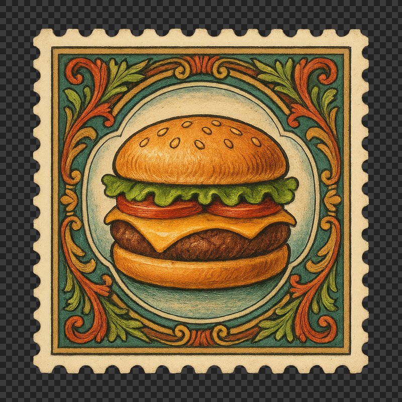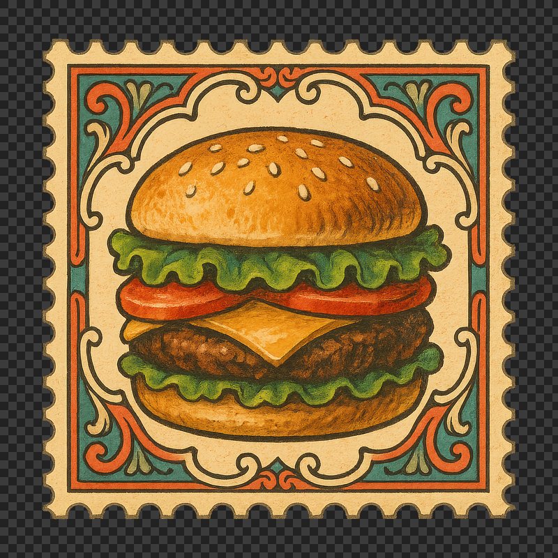 PNG Vintage burger stamp illustration. https://www.rawpixel.com/image/18231060/png-vintage-burger-stamp-illustrationView license