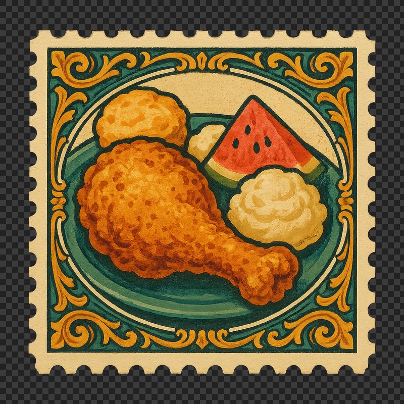 PNG Vintage fried chicken stamp illustration. https://www.rawpixel.com/image/18231098/png-vintage-fried-chicken-stamp-illustrationView license