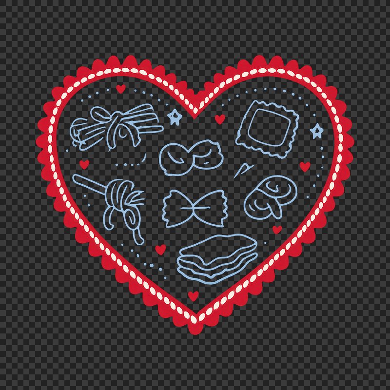 PNG Heart-shaped pasta illustration. https://www.rawpixel.com/image/25155095/png-heart-shaped-pasta-illustrationView license