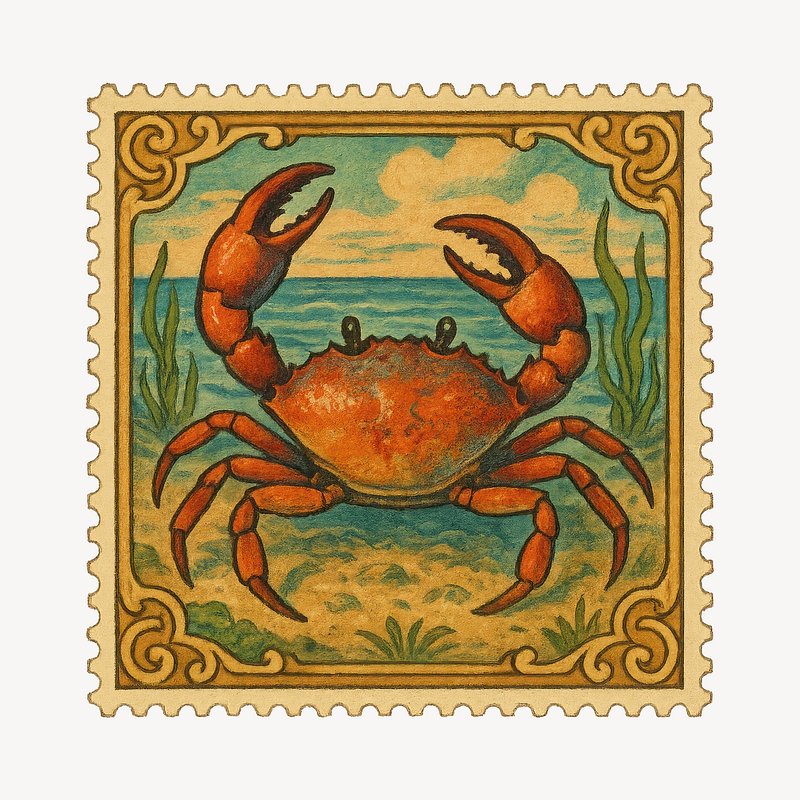 Vintage crab postage stamp illustration. https://www.rawpixel.com/image/18660252/vintage-crab-postage-stamp-illustrationView license