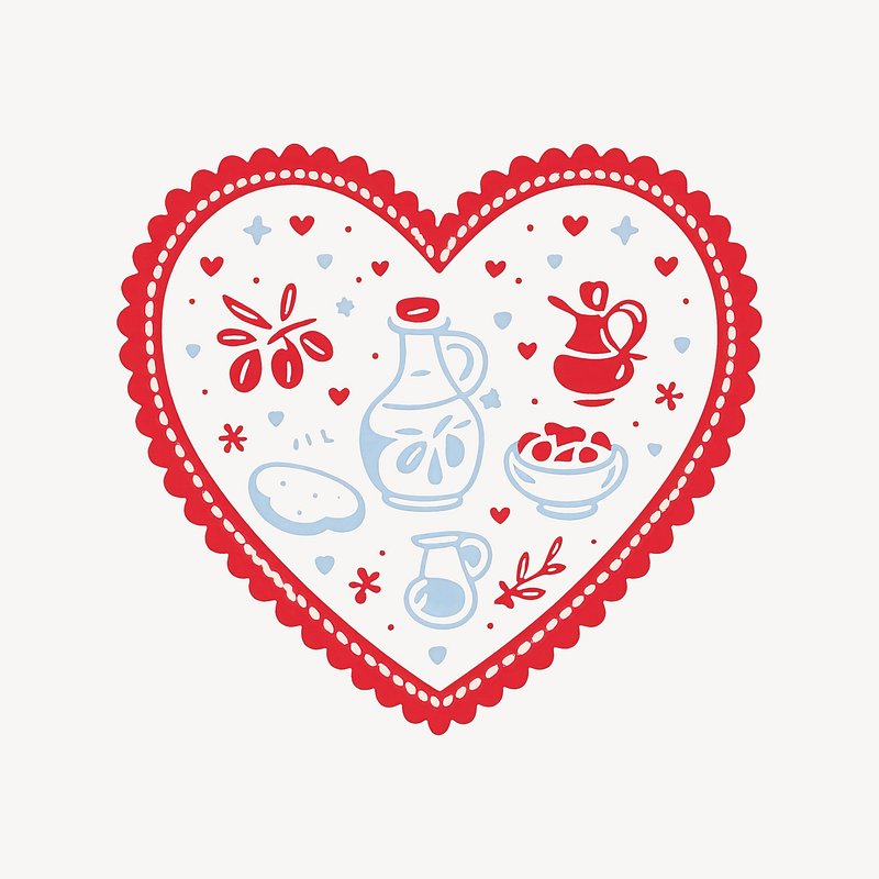 Heart-shaped culinary love illustration. https://www.rawpixel.com/image/25222101/heart-shaped-culinary-love-illustrationView license