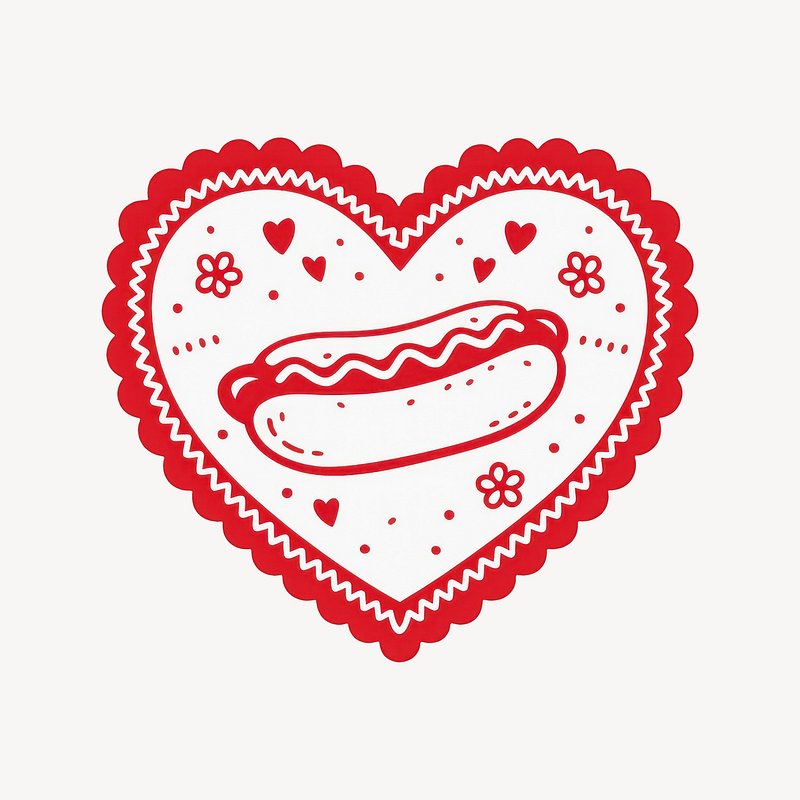 Heart-shaped hotdog illustration https://www.rawpixel.com/image/25226039/heart-shaped-hotdog-illustrationView license