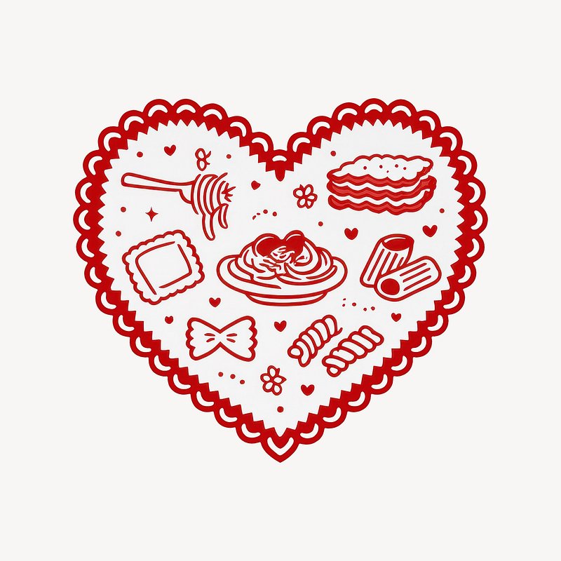 Heart-shaped pasta illustration. https://www.rawpixel.com/image/25227045/heart-shaped-pasta-illustrationView license