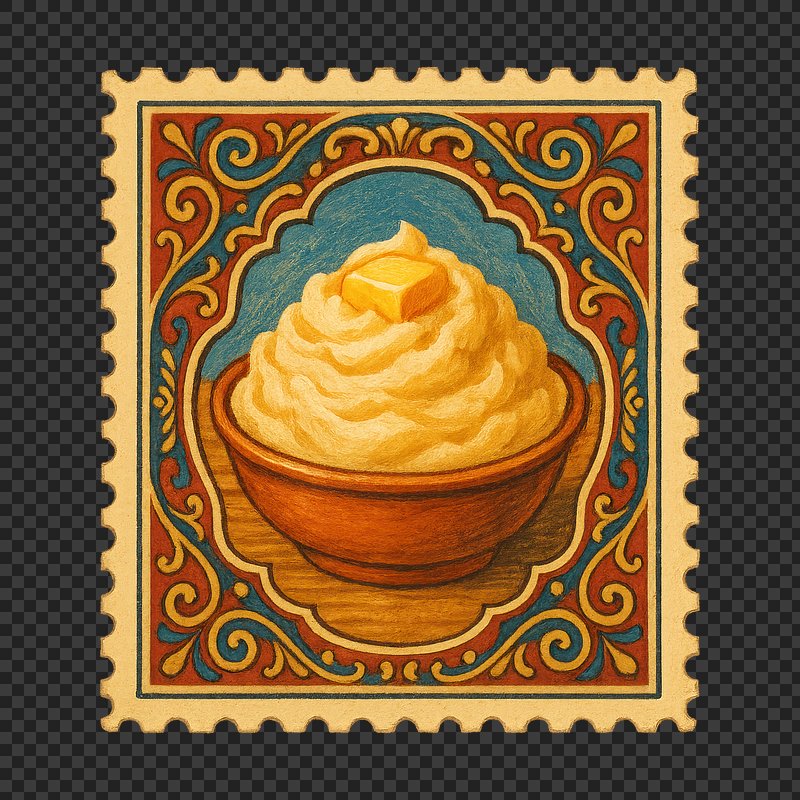 PNG Vintage mashed potatoes stamp illustration. https://www.rawpixel.com/image/22775856/png-vintage-mashed-potatoes-stamp-illustrationView license