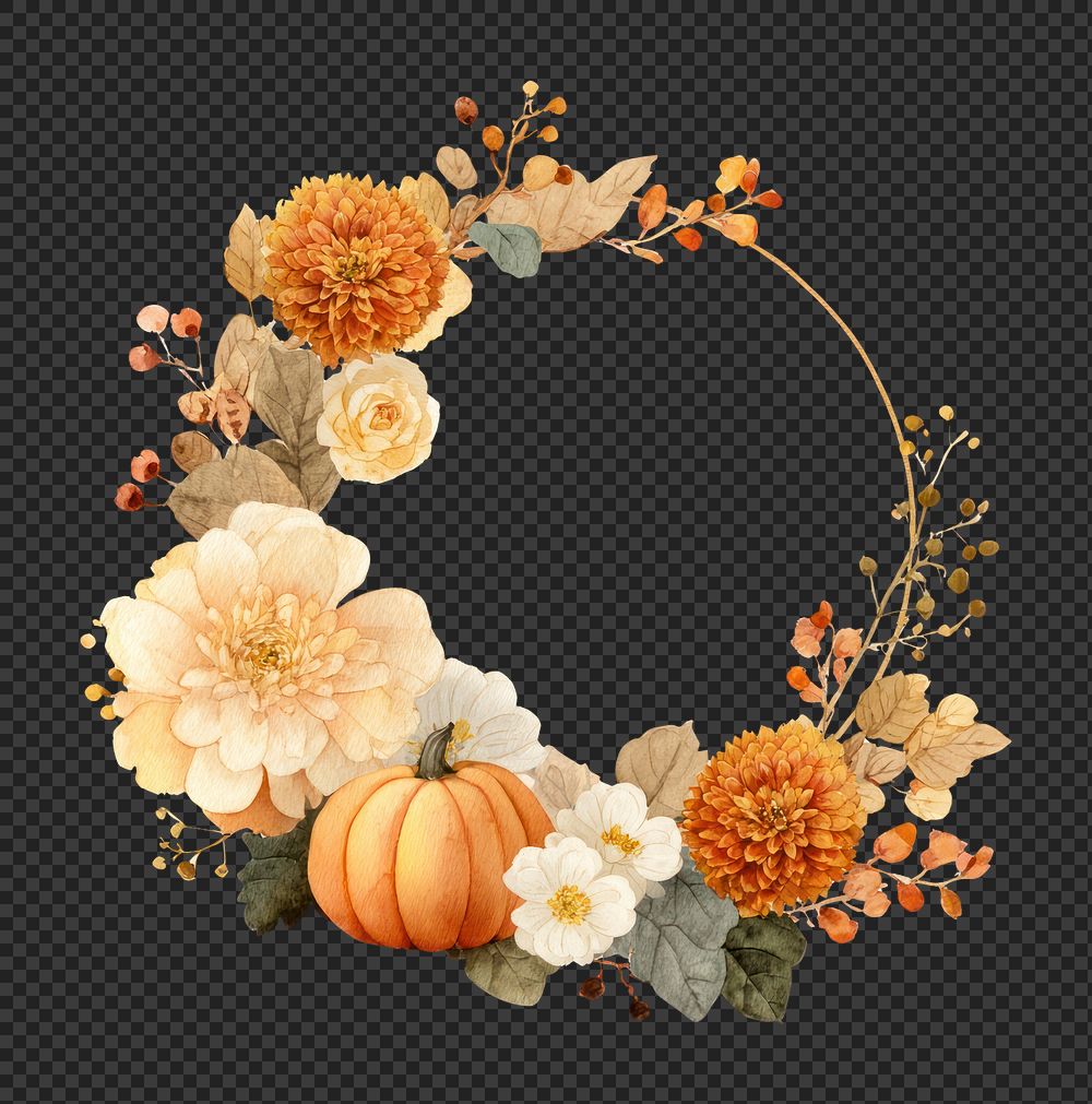 PNG Autumn floral wreath illustration. https://www.rawpixel.com/image/20887897/png-autumn-floral-wreath-illustrationView license