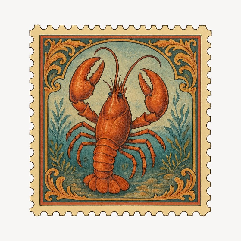 Vintage lobster postage stamp illustration. https://www.rawpixel.com/image/18660866/vintage-lobster-postage-stamp-illustrationView license