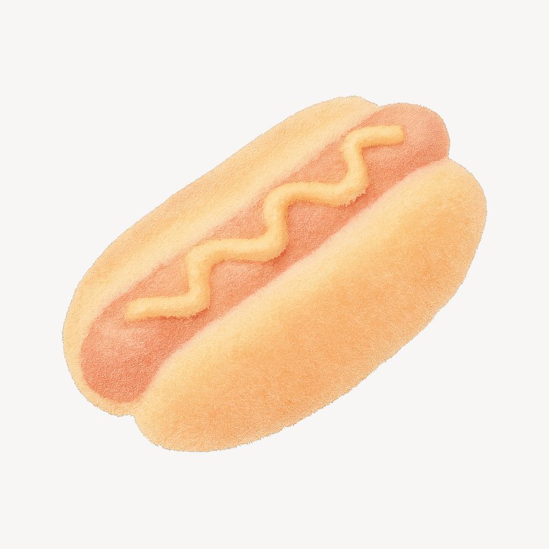 Whimsical plush hotdog illustration. https://www.rawpixel.com/image/19597169/whimsical-plush-hotdog-illustrationView license