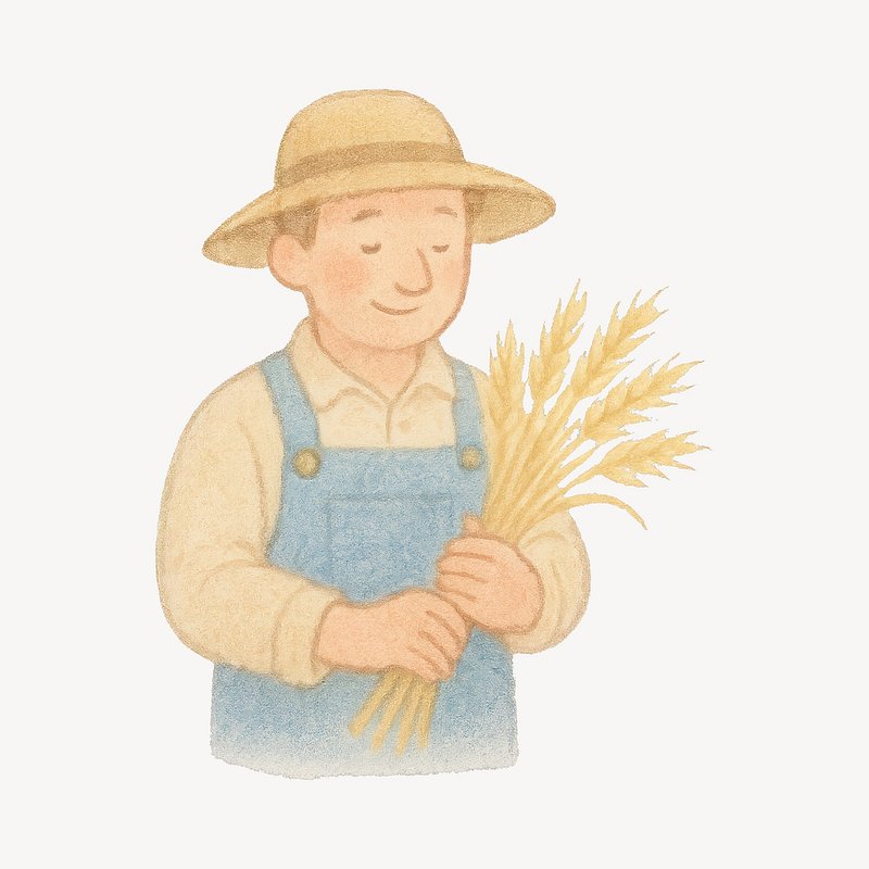 Farmer holding wheat illustration. https://www.rawpixel.com/image/19568489/farmer-holding-wheat-illustrationView license