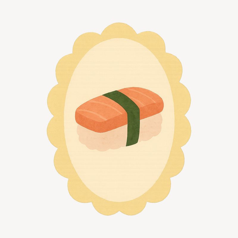 Illustrated sushi with scalloped border. https://www.rawpixel.com/image/19553773/illustrated-sushi-with-scalloped-borderView license