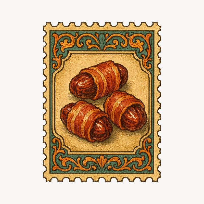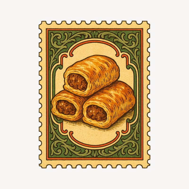 Vintage sausage roll stamp illustration. https://www.rawpixel.com/image/23112789/vintage-sausage-roll-stamp-illustrationView license