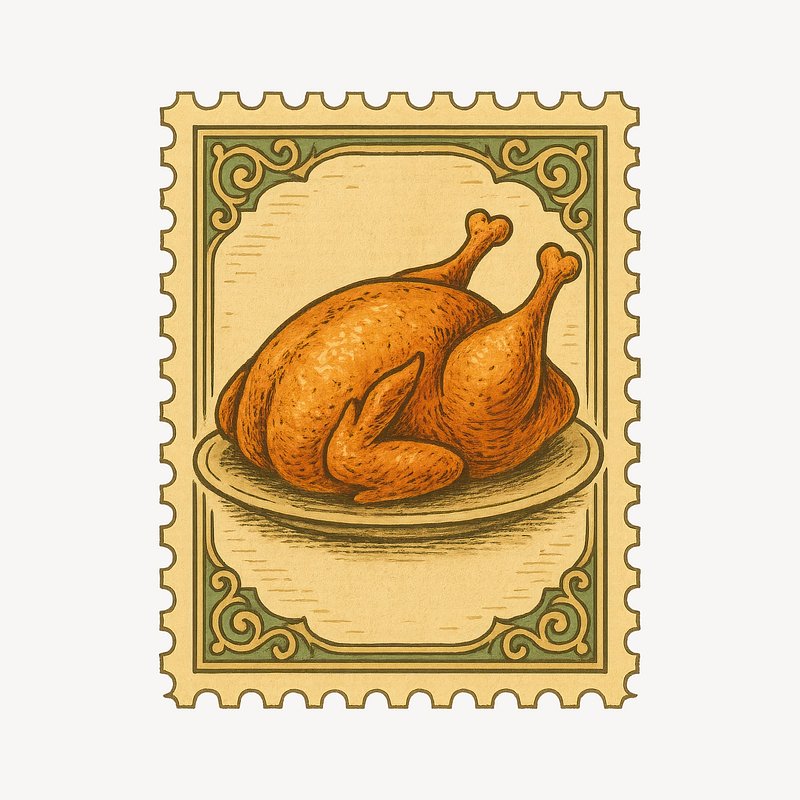 Vintage roast chicken stamp illustration. https://www.rawpixel.com/image/23114531/vintage-roast-chicken-stamp-illustrationView license