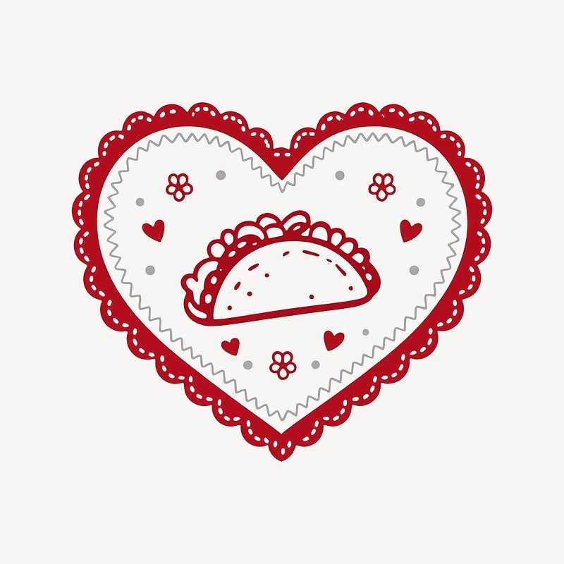 Taco love heart illustration https://www.rawpixel.com/image/25227223/taco-love-heart-illustrationView license
