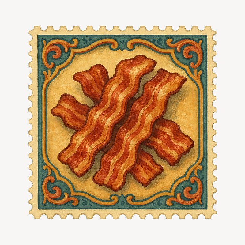 Vintage bacon stamp illustration https://www.rawpixel.com/image/18660600/vintage-bacon-stamp-illustrationView license