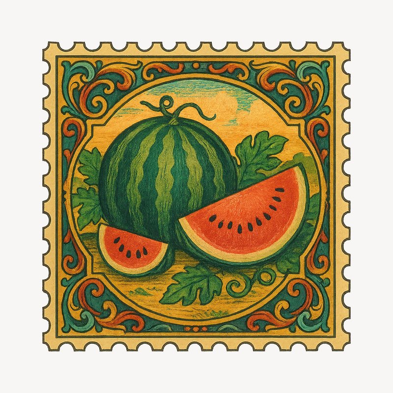 Vintage watermelon stamp illustration. https://www.rawpixel.com/image/18659640/vintage-watermelon-stamp-illustrationView license