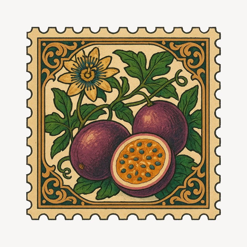 Vintage passion fruit stamp illustration. https://www.rawpixel.com/image/18660011/vintage-passion-fruit-stamp-illustrationView license