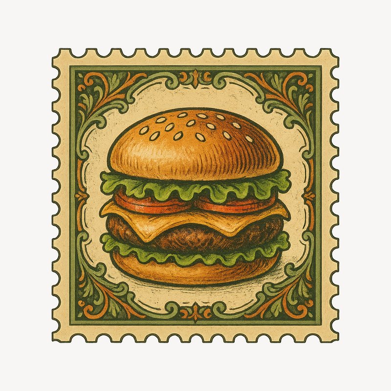 Vintage burger stamp illustration. https://www.rawpixel.com/image/18384973/vintage-burger-stamp-illustrationView license