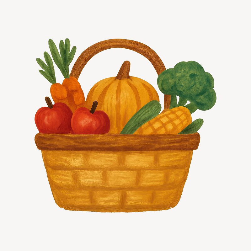 Colorful harvest basket illustration. https://www.rawpixel.com/image/21676798/colorful-harvest-basket-illustrationView license