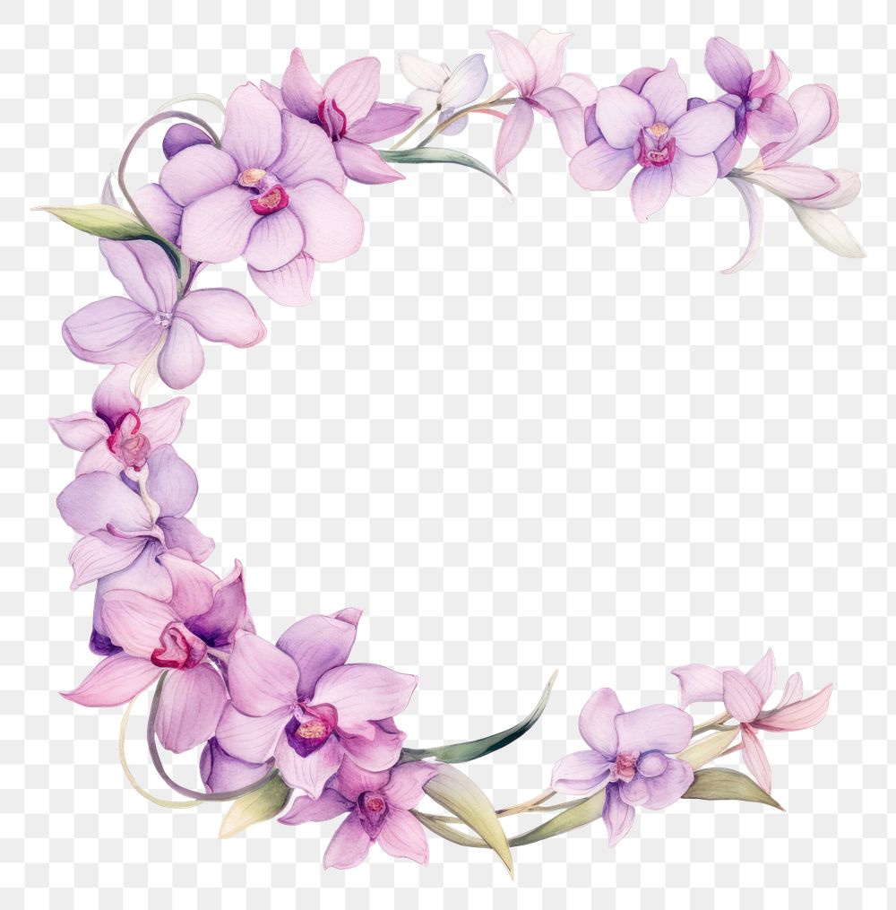 PNG Orchid frame watercolor flower wreath plant. https://www.rawpixel.com/image/14374214/png-orchid-frame-watercolor-flower-wreath-plantView license