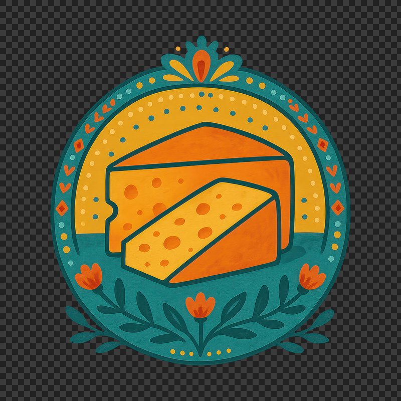PNG Colorful cheese emblem illustration. https://www.rawpixel.com/image/23416577/png-colorful-cheese-emblem-illustrationView license