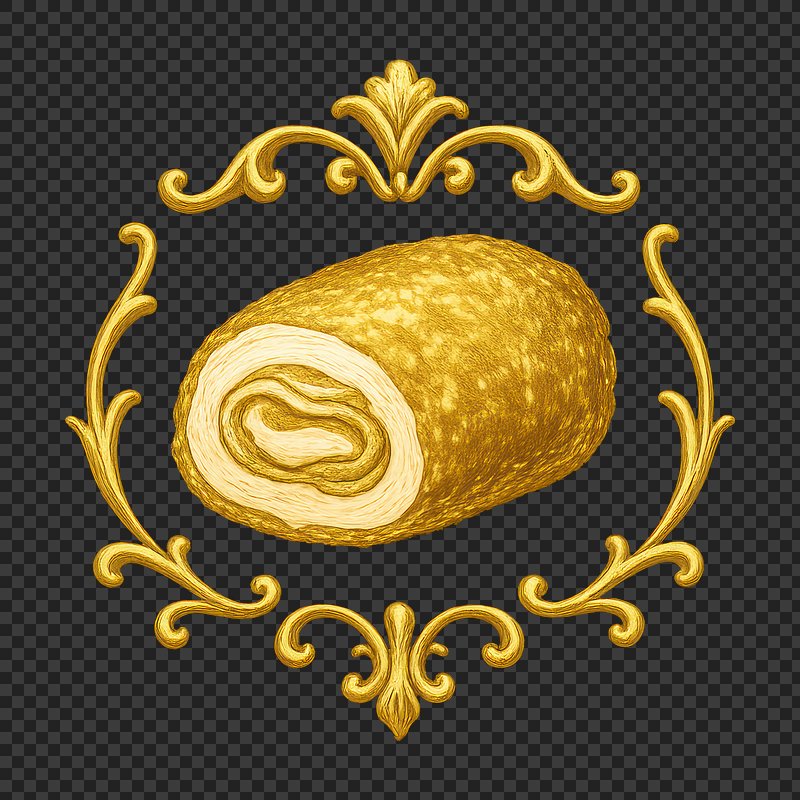 PNG Golden pastry with ornate frame. https://www.rawpixel.com/image/18573123/png-golden-pastry-with-ornate-frameView license