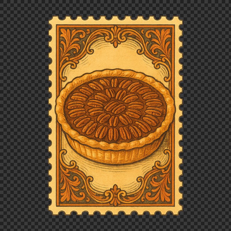 PNG Vintage pecan pie postage stamp https://www.rawpixel.com/image/22961780/png-vintage-pecan-pie-postage-stampView license