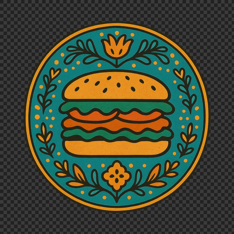 PNG Colorful burger floral emblem https://www.rawpixel.com/image/23339564/png-colorful-burger-floral-emblemView license