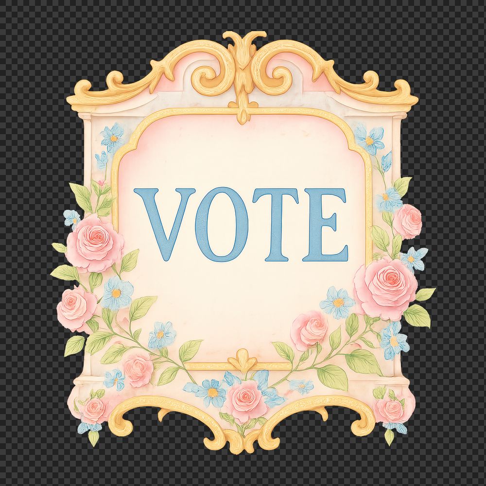 PNG Vintage floral vote sign illustration. https://www.rawpixel.com/image/18511364/png-vintage-floral-vote-sign-illustrationView license