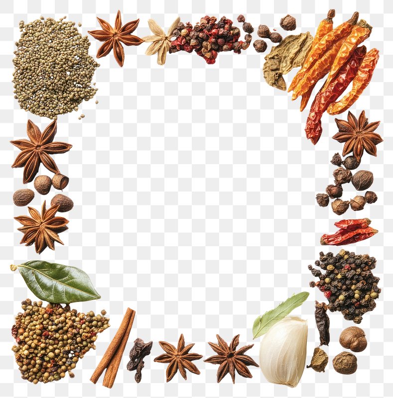 PNG Masala spices border frame. https://www.rawpixel.com/image/15661398/png-masala-spices-border-frameView license