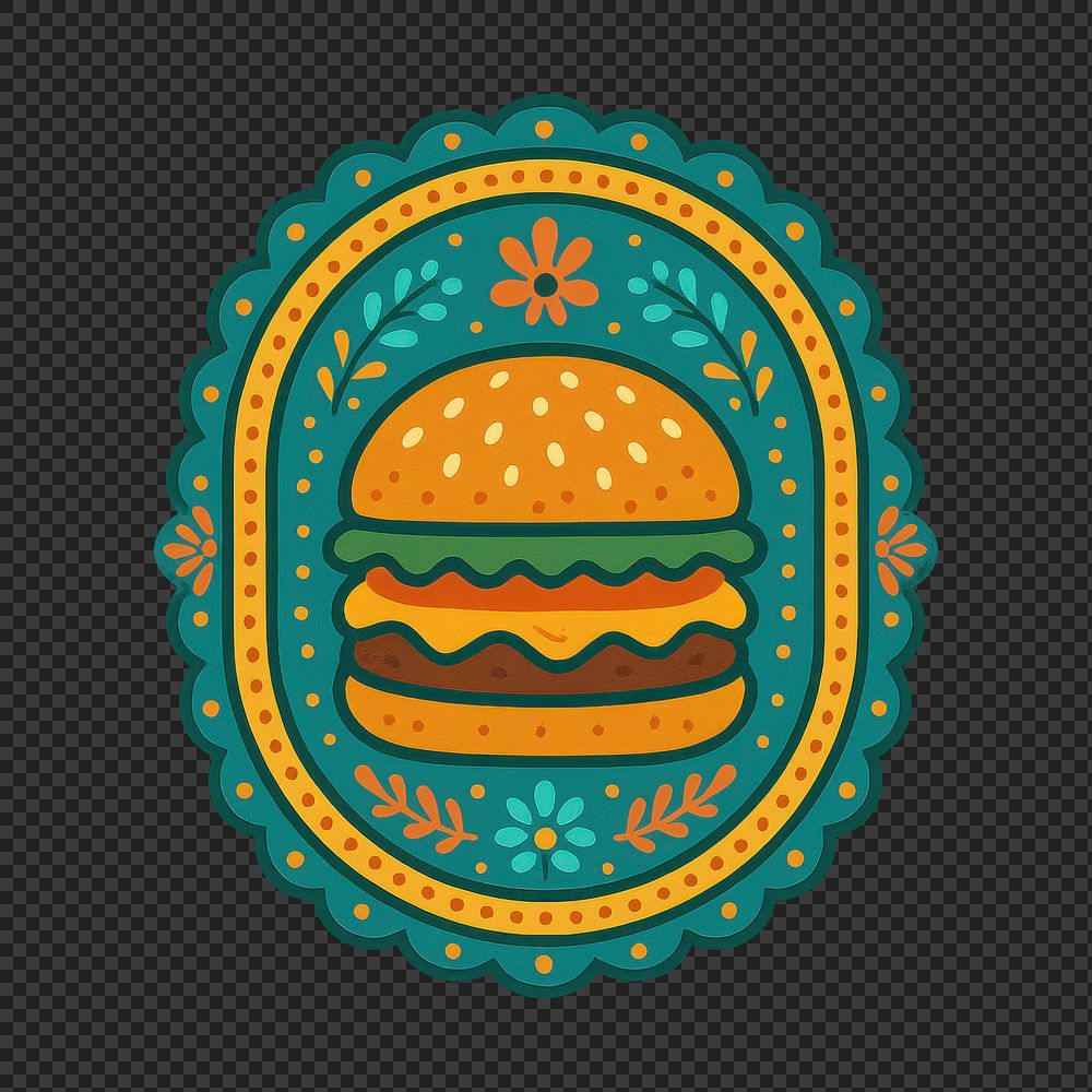 PNG Ornate burger with floral details. https://www.rawpixel.com/image/18494701/png-ornate-burger-with-floral-detailsView license