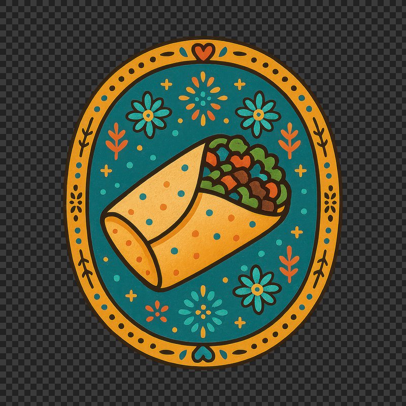 PNG Colorful burrito in ornate frame. https://www.rawpixel.com/image/23416474/png-colorful-burrito-ornate-frameView license