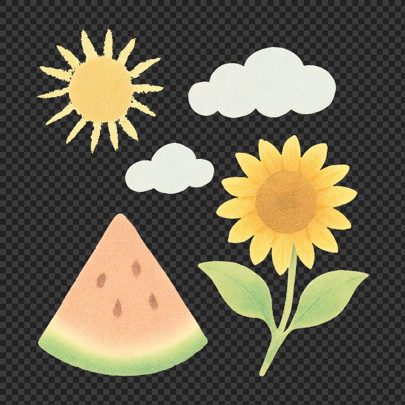 PNG Summer elements watercolor illustration. https://www.rawpixel.com/image/18552662/png-summer-elements-watercolor-illustrationView license