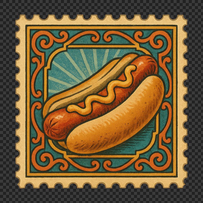 PNG Vintage hotdog stamp illustration https://www.rawpixel.com/image/18231337/png-vintage-hotdog-stamp-illustrationView license