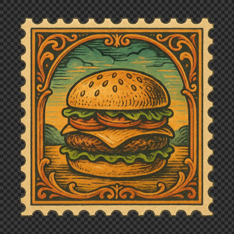 PNG Vintage burger stamp illustration. https://www.rawpixel.com/image/18231059/png-vintage-burger-stamp-illustrationView license