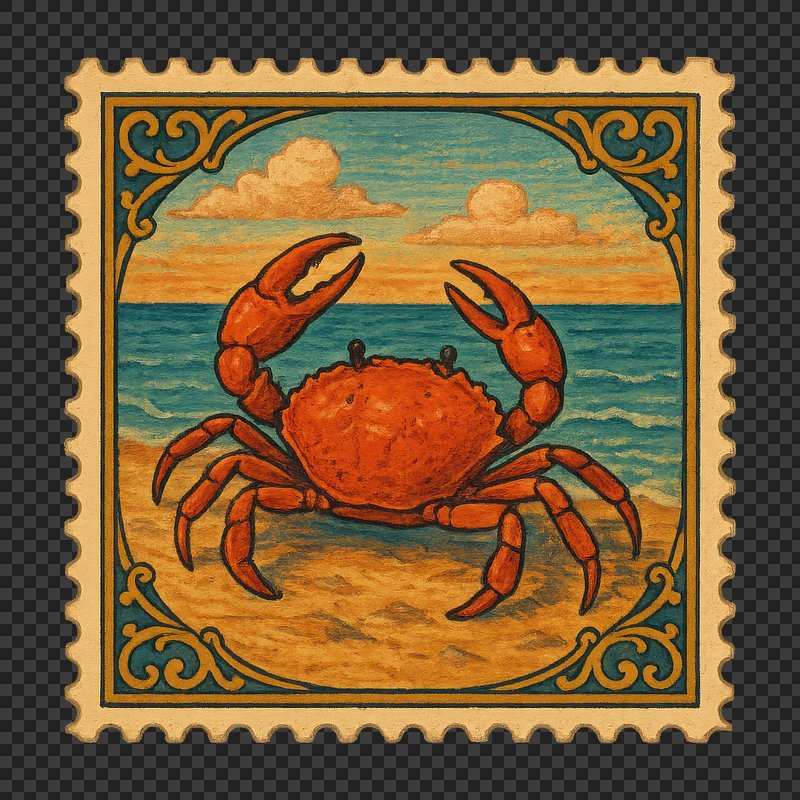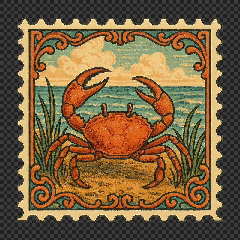 PNG Vintage crab postage stamp illustration. https://www.rawpixel.com/image/18230683/png-vintage-crab-postage-stamp-illustrationView license