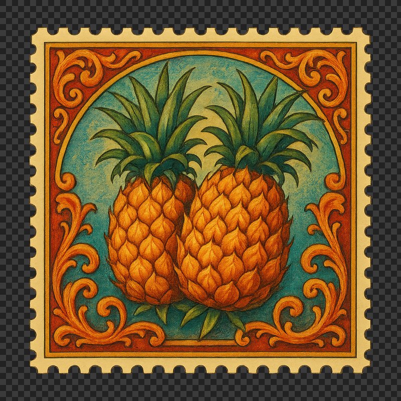 PNG Vintage pineapple postage stamp https://www.rawpixel.com/image/18191910/png-vintage-pineapple-postage-stampView license