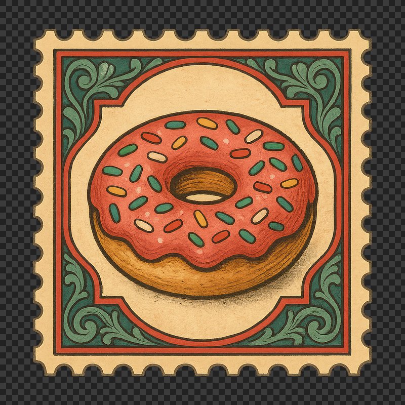 Vintage donut stamp illustration. https://www.rawpixel.com/image/18385608/vintage-donut-stamp-illustrationView license