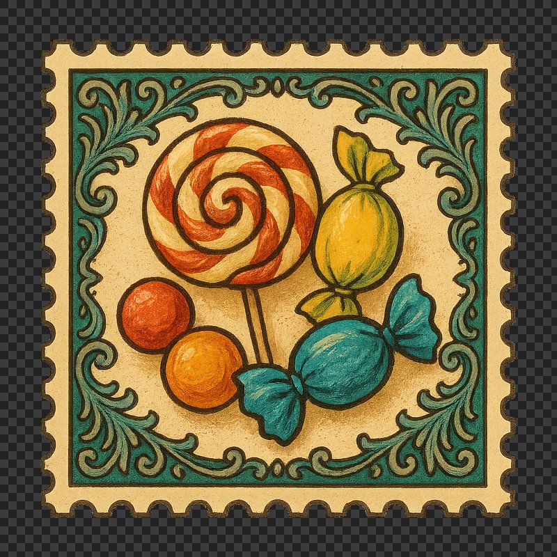 PNG Vintage candy stamp illustration https://www.rawpixel.com/image/18192487/png-vintage-candy-stamp-illustrationView license