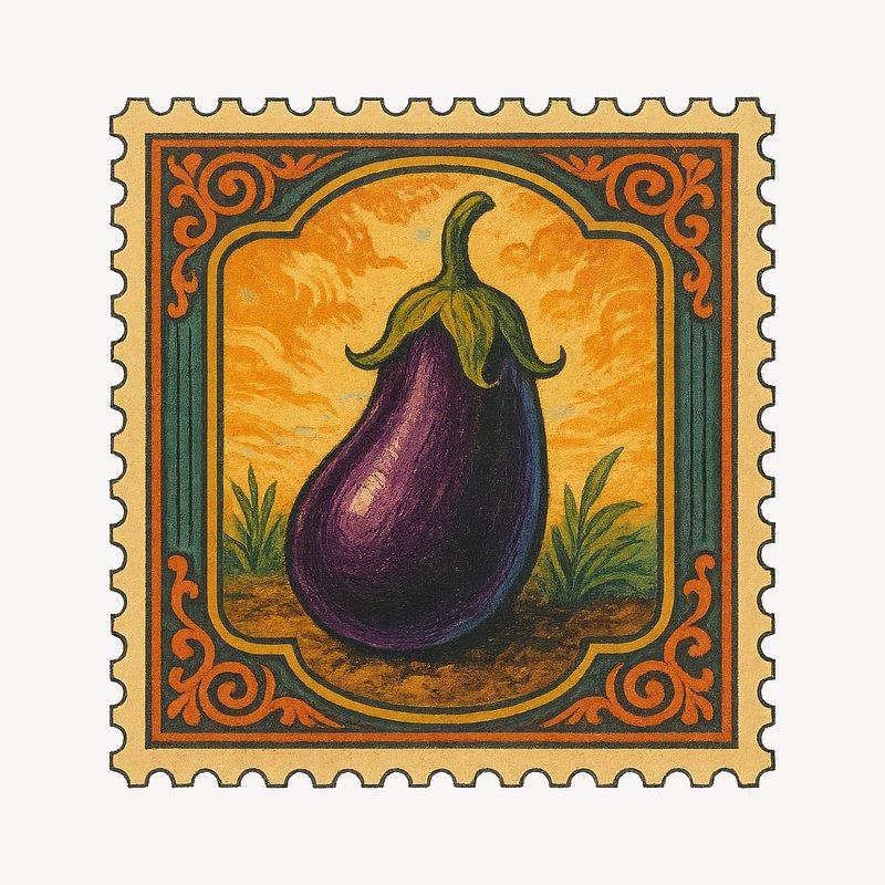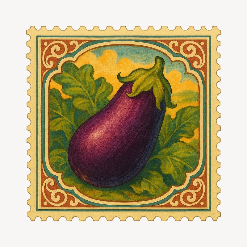 Vintage eggplant postage stamp illustration. https://www.rawpixel.com/image/18658672/vintage-eggplant-postage-stamp-illustrationView license