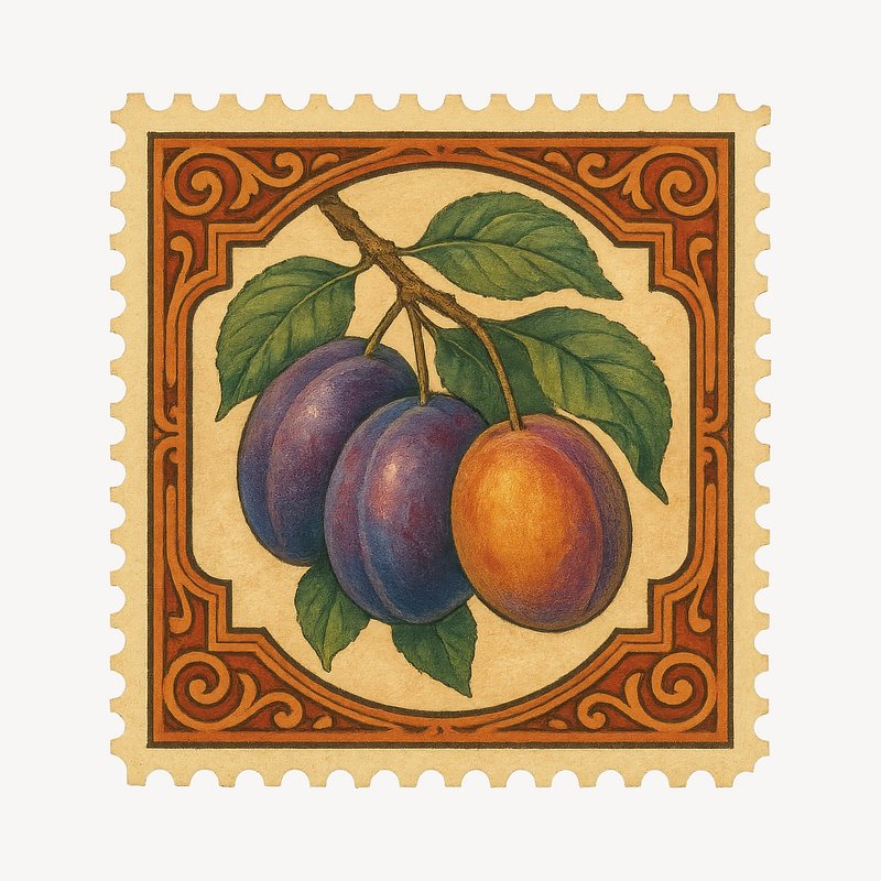 Vintage plum fruit stamp illustration. https://www.rawpixel.com/image/18660407/vintage-plum-fruit-stamp-illustrationView license