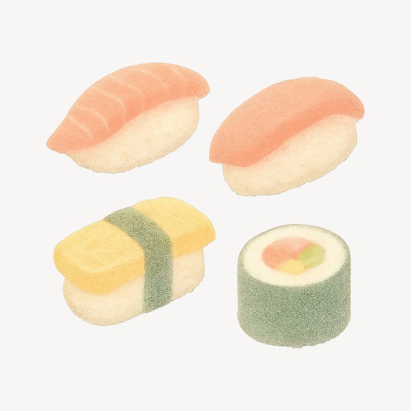 Pastel sushi art illustration https://www.rawpixel.com/image/19569023/pastel-sushi-art-illustrationView license